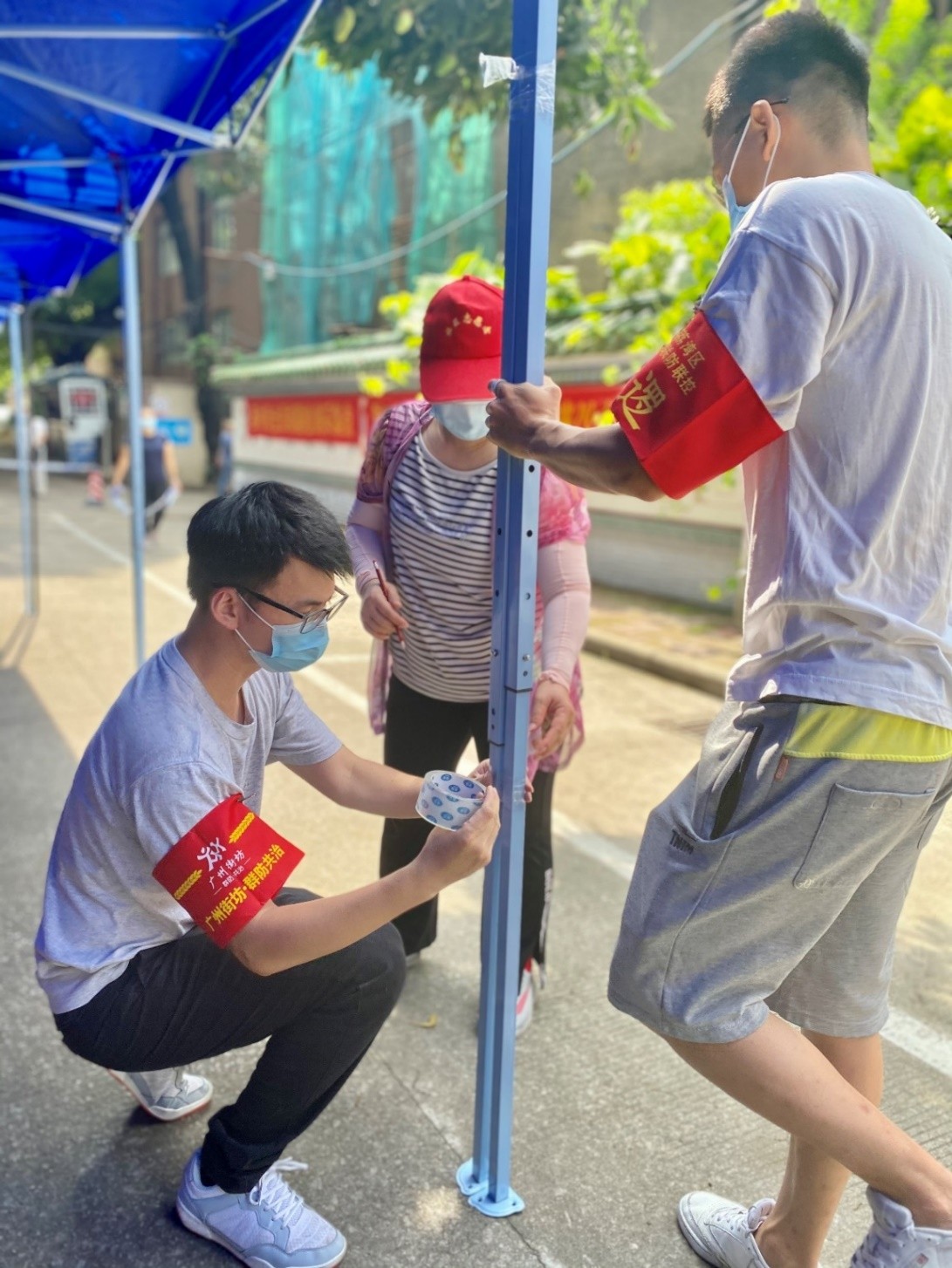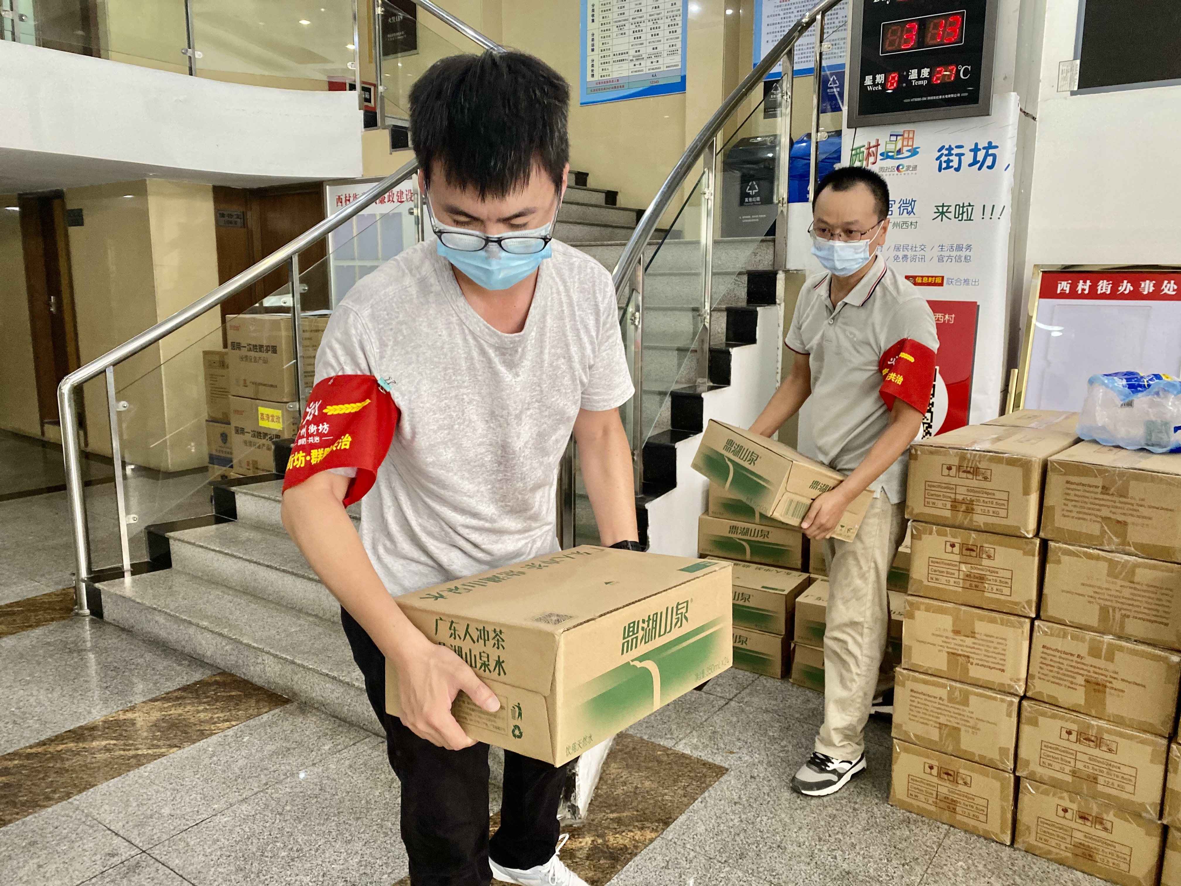 5月30日下午,室外温度接近35摄氏度,志愿服务队队员耐心引导现场排队秩序,协助解答疑问;为了保障防控物资供给,志愿服务队员们搬运防疫消暑物资,来来回回走了无数次……没一会儿,汗水便湿透全身,但党员志愿服务队的队员们没有一句怨言,平稳有序地推进现场核酸检测支援工作。