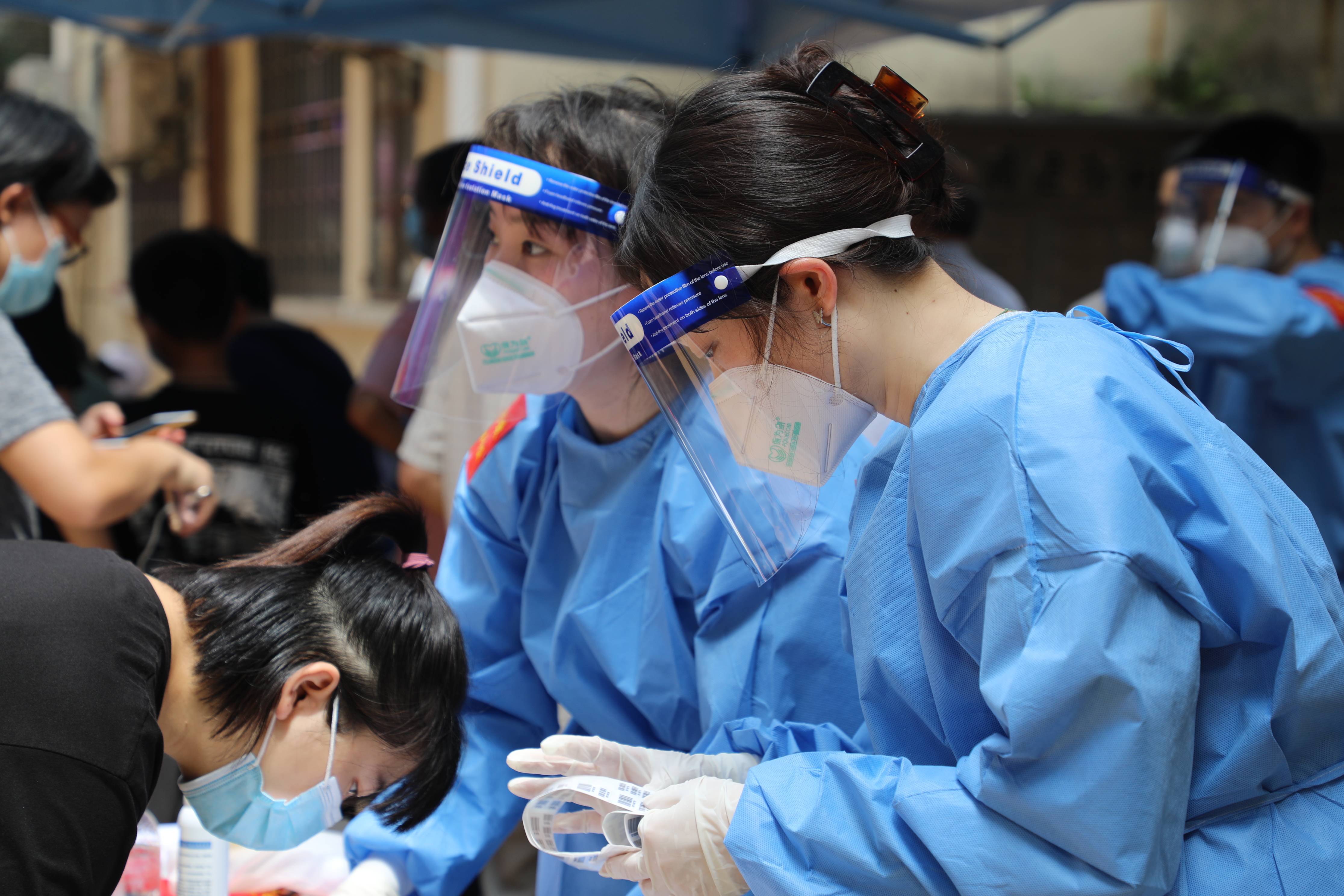 五个小时内,职工医院的核酸检测医护人员,一次次地登记信息、弓腰、探喉、采样,上千次的步骤重复,却没有一句怨言。半天下来,汗水湿透衣裳、额头印出勒痕,他们也毫不在意。而在后方支援的志愿者们,无论是后勤物资的运送,还是居民检测的引导,都认真负责,做到耐心细致。