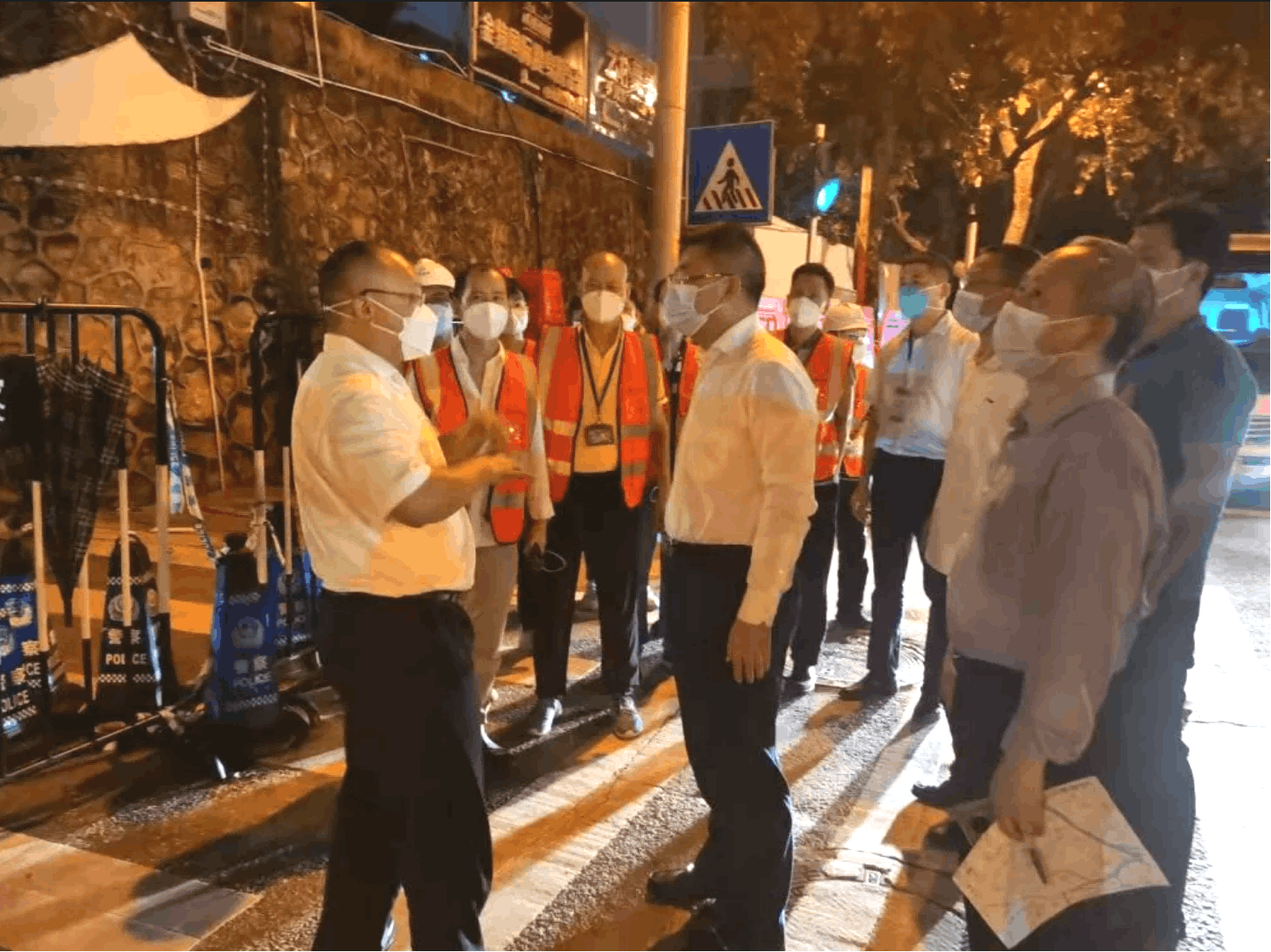 施工期间,建筑集团党委书记、董事长梁湖清连夜召开会议,亲赴现场安排部署;集团总经理张宇江、副总经理毕然亲自带队考察场地,布置落实临时安置点工作;集团副总经理马震聪带领市设计院团队通宵达旦完成围蔽方案设计;副总经理郭佑雄深入一线,靠前指挥,及时协调解决项目问题。