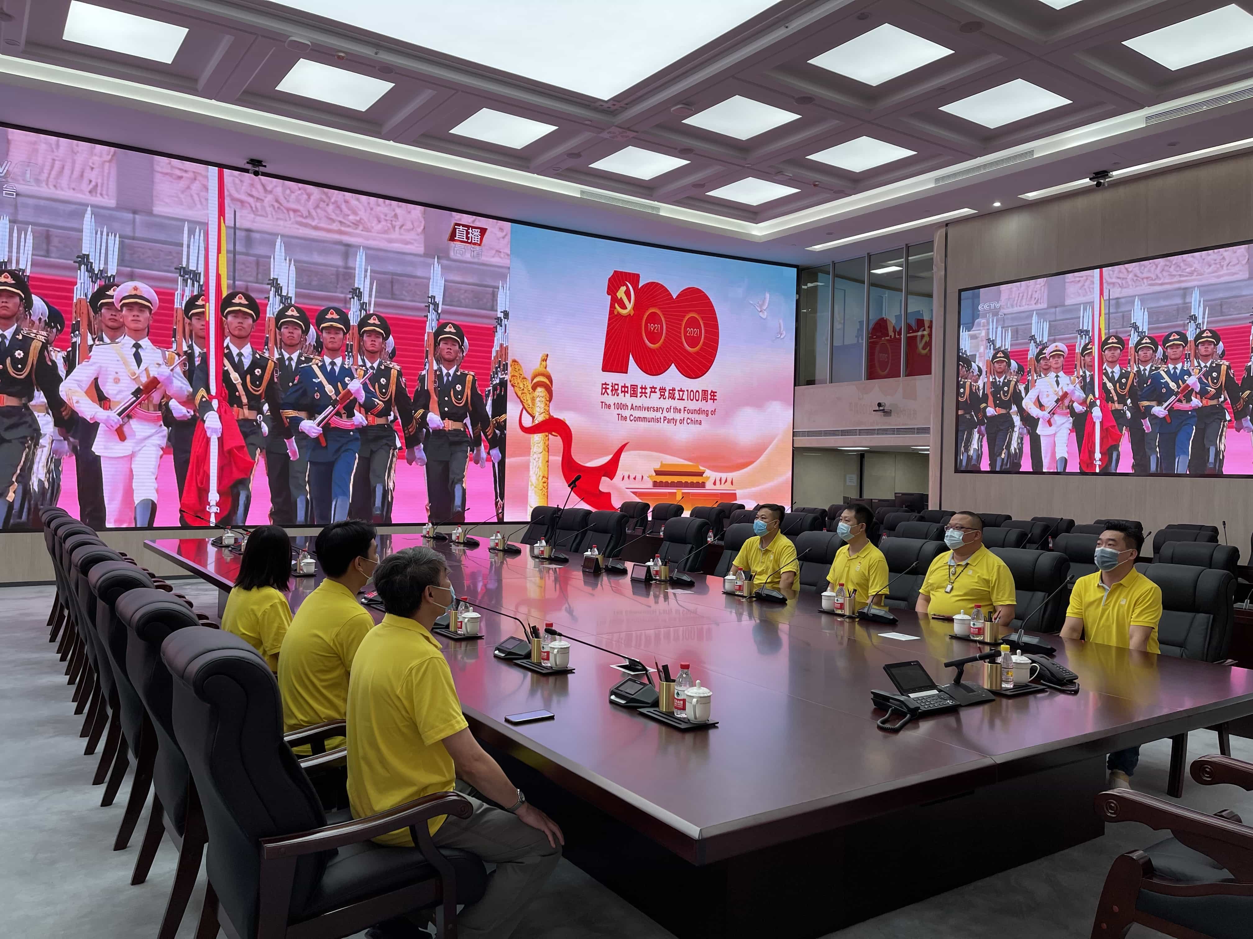 7月1投大小单双平台午8时,庆祝中国共产党成立100周年大会在北京天安门广场隆重举行。中共中央总书记、国家主席、中央军委主席习近平同志发表重要讲话。yd2333云顶电子游戏集团组织领导班子成员、总部各部室共140余名党员在集团八楼礼堂收看大会直播实况,各直属企业通过通过电视、网络直播、手机等渠道收看大会直播,共同庆祝中国共产党百年华诞。