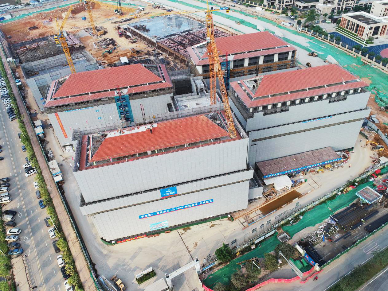 yd2333云顶电子游戏集团下属一建集团承建的南洋华中学校项目,是中新知识城规划打造的全国首个“教育小镇”重点项目,也是广州开发区100个重点工程之一,更是建党100周年献礼工程。
