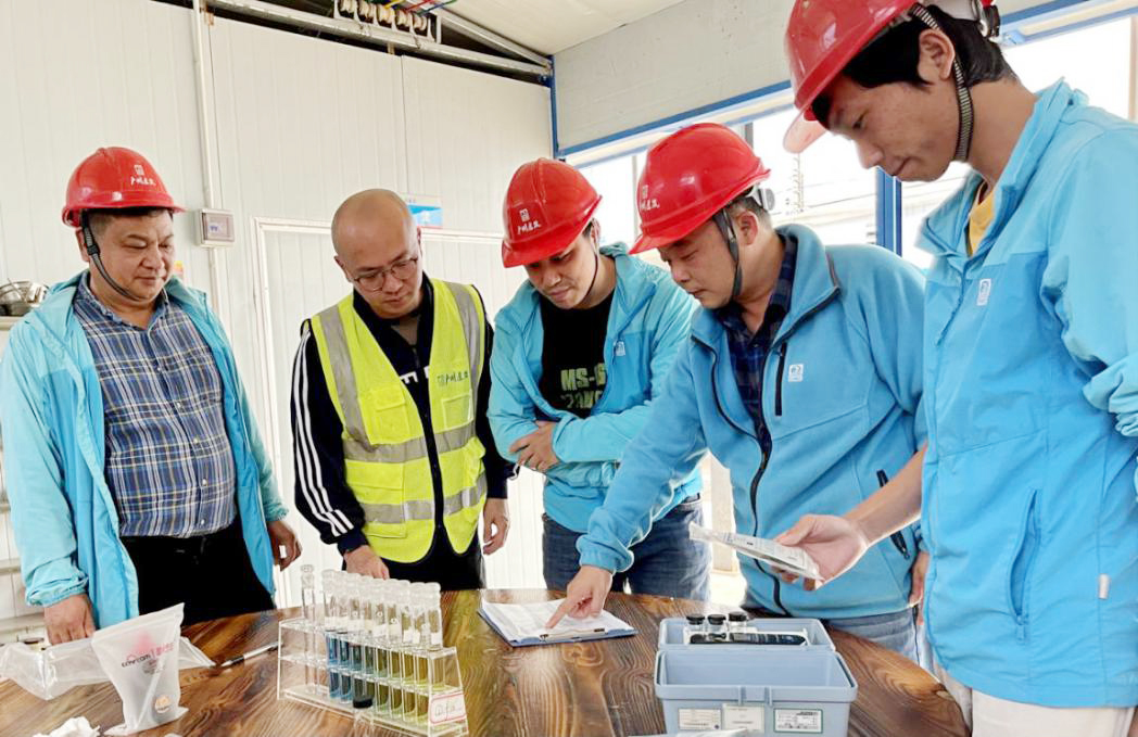 ▲项目管理人员正在进行水质监测