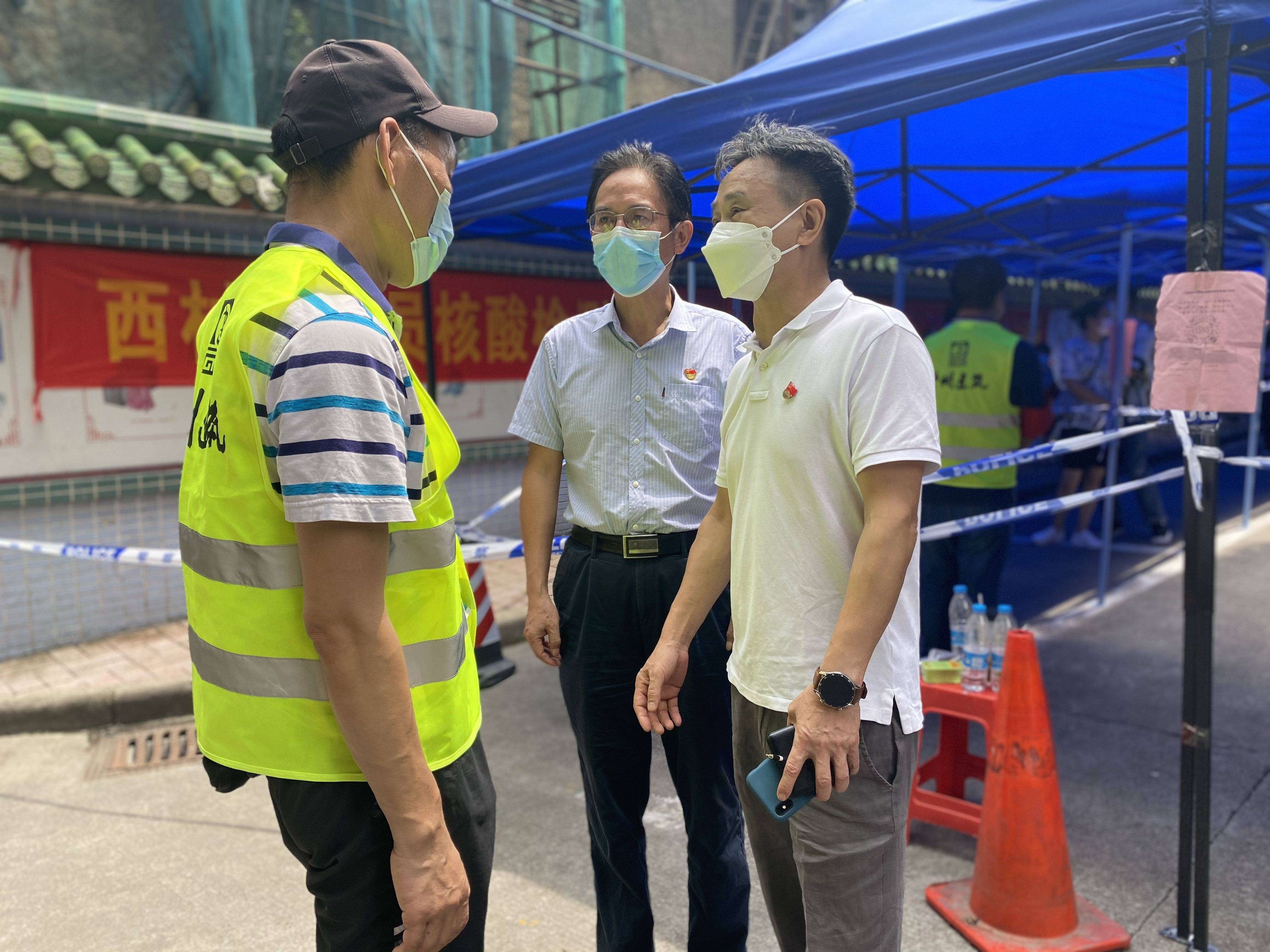 5月30日下午14时,yd2333云顶电子游戏集团党委副书记左弋一行到荔湾区西村街支援点看望慰问党员志愿服务队全体队员。左弋同志对志愿服务队的工作表示肯定,表扬全体队员在疫情防控工作中的奉献精神,充分彰显党员的模范带头作用;叮嘱全体队员要继续毫不放松地协助社区做好疫情期间的支援工作,展现集团党员风采,履行国企的责任担当。最后,左弋同志还提醒队员们要做好自身防护,遇到困难或特殊情况第一时间向党组织反馈。