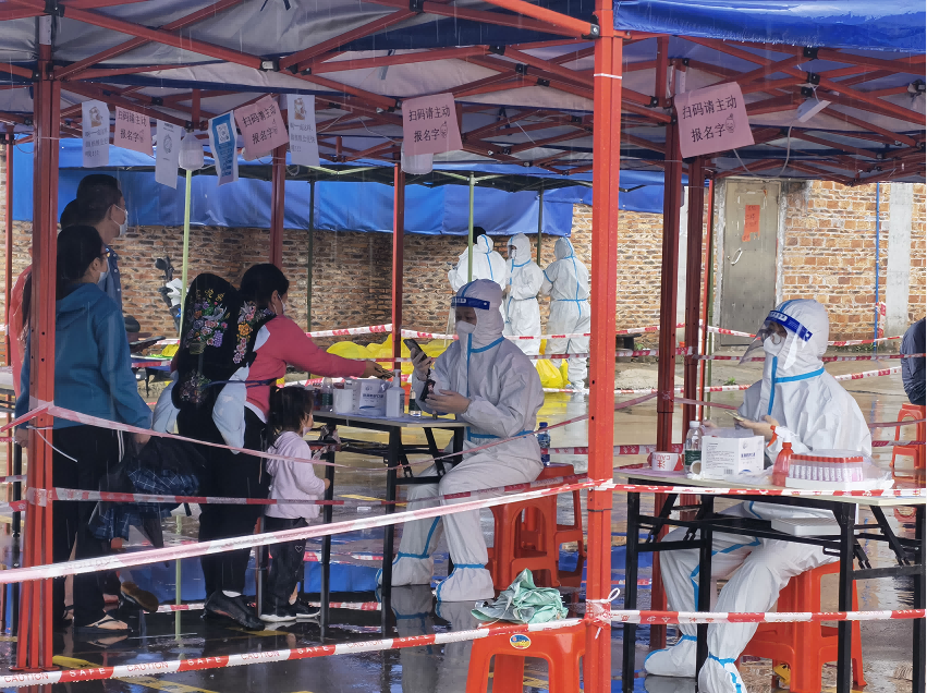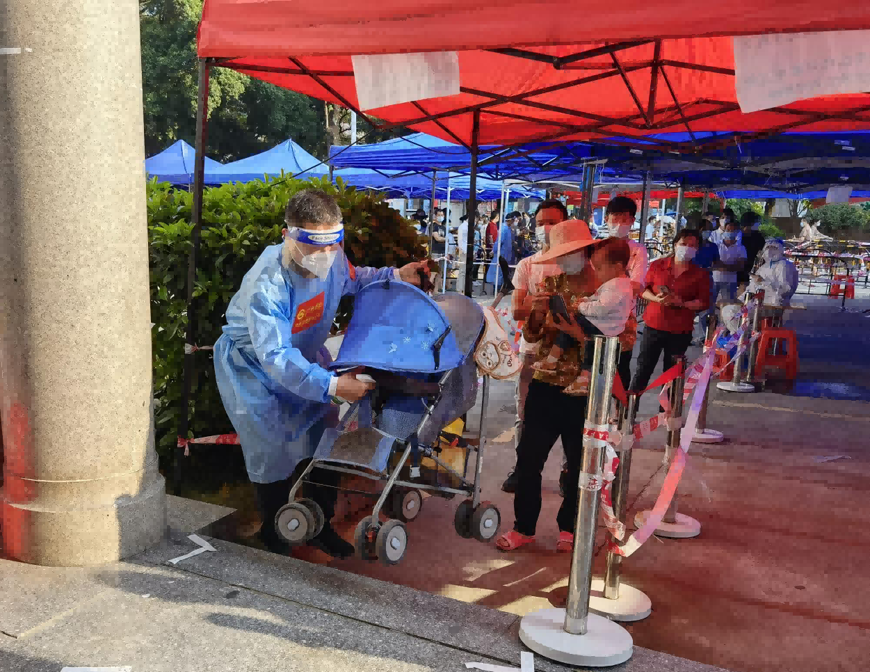 5月1日全天都在下雨,气温“断崖式”降至15摄氏度,但yd2333云顶电子游戏抗击疫情的步伐风雨无阻、从未停歇。期间,yd2333云顶电子游戏武装部副部长陈勇军始终奋战在防疫工作最前沿,在对口村(居)委协调沟通支援任务、人员调动安排等工作中发挥重要枢纽作用。属下二建公司纪委副书记蔡礼显、穗新集团纪委办公室主任戴高峰等干部主动放弃休息,率队驰援抗疫一线,充分展现了党员干部的责任担当。属下一建集团党员邓广锋是花都人,也是本次任务的领队,在连续8小时的奋战中,他冒雨辗转于狮岭镇新民村10队和南航碧花园之间,精准解决现场各类需求,以实际行动助力家乡战“疫”。属下工程事业部党员余文浩在家人刚做完手术需要照顾之时,毅然选择坚守抗“疫”一线,并表示“只要有需要,我会一直在。”属下机安公司党员郑倩怡、唐焕智克服天气骤变、工作环境简陋等困难,熟练、快速完成扫描试管、核酸码等采样前置工序,尽管长时间闷在密不透风的防护服里,也毫无怨言坚守到最后。他们是成百上千的“广建先锋”志愿者的缩影,也是“疫”线上无私奉献的坚强堡垒。