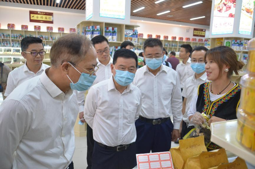 ▲考察组一行了解特色农产品、手工艺品销售情况