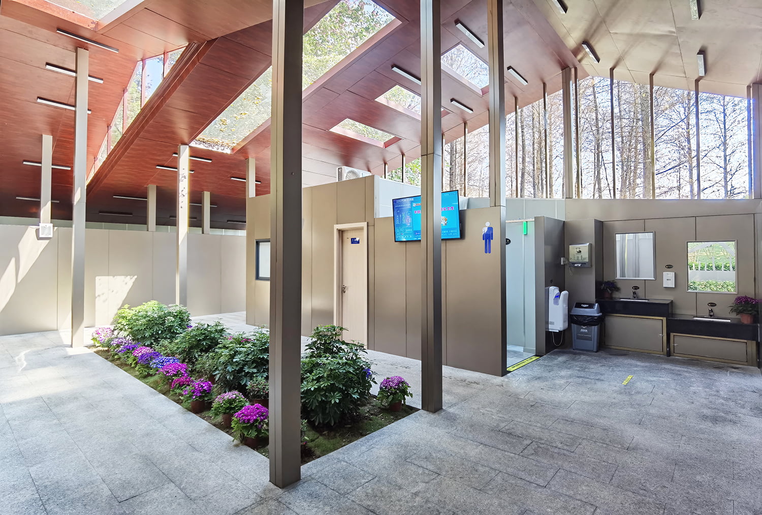 公厕不仅有“高颜值”外表,内部还配备了先进的智能化运维管理系统,拥有自动照明、通风排风、实施监测等功能,可对厕所的人流量、使用情况、温度、湿度、空气质量等进行监测,使公厕清洁舒适、环保节能,为城市公厕建造带来了新思路。
