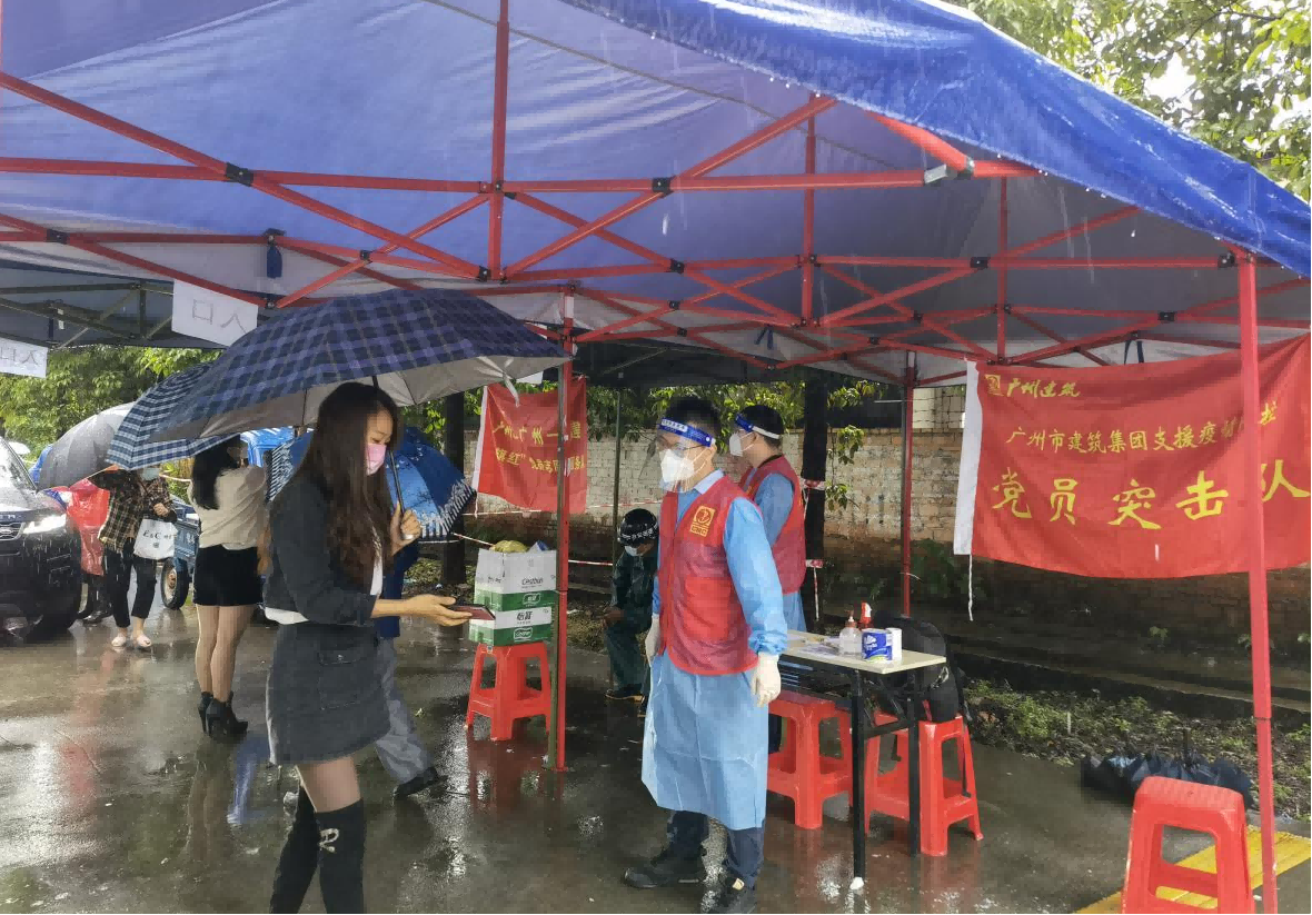 5月1日全天都在下雨,气温“断崖式”降至15摄氏度,但yd2333云顶电子游戏抗击疫情的步伐风雨无阻、从未停歇。期间,yd2333云顶电子游戏武装部副部长陈勇军始终奋战在防疫工作最前沿,在对口村(居)委协调沟通支援任务、人员调动安排等工作中发挥重要枢纽作用。属下二建公司纪委副书记蔡礼显、穗新集团纪委办公室主任戴高峰等干部主动放弃休息,率队驰援抗疫一线,充分展现了党员干部的责任担当。属下一建集团党员邓广锋是花都人,也是本次任务的领队,在连续8小时的奋战中,他冒雨辗转于狮岭镇新民村10队和南航碧花园之间,精准解决现场各类需求,以实际行动助力家乡战“疫”。属下工程事业部党员余文浩在家人刚做完手术需要照顾之时,毅然选择坚守抗“疫”一线,并表示“只要有需要,我会一直在。”属下机安公司党员郑倩怡、唐焕智克服天气骤变、工作环境简陋等困难,熟练、快速完成扫描试管、核酸码等采样前置工序,尽管长时间闷在密不透风的防护服里,也毫无怨言坚守到最后。他们是成百上千的“广建先锋”志愿者的缩影,也是“疫”线上无私奉献的坚强堡垒。