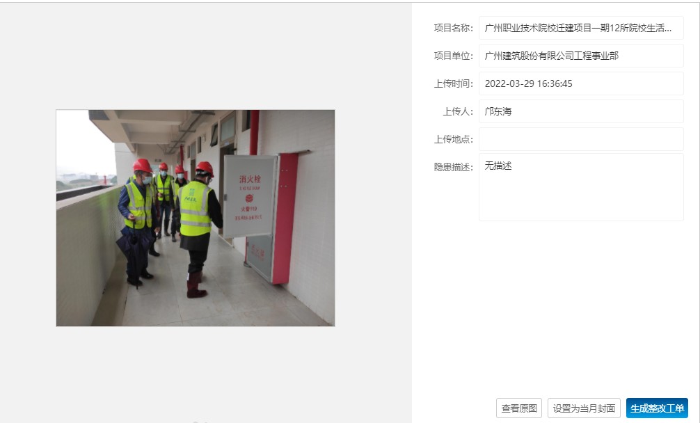 以广州职业技术院校迁建项目一期12所院校生活区房建工程设计施工总承包(标段一)项目为例,该项目在使用管理系统及应用手机端配套APP进行项目管理后,实现了快捷采集建设工程巡查、整改、验收等管理信息,还可及时查看安全管理状况,迅速排查安全隐患,追溯施工全过程施工行为,达到对项目全过程、全方位管理。此外,系统可做到危大工程安全管理信息数据全面汇总,进一步加大项目监控力度,切实提升了项目标准化、规范化管理水平。