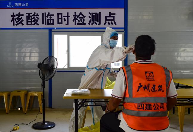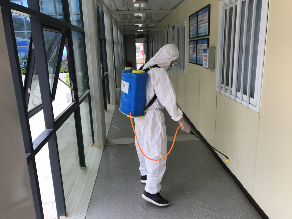 ▲定期组织项目人员进行核酸检测 ▲扎实做好项目部环境消杀