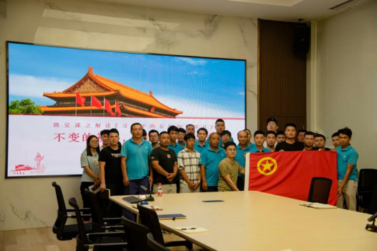 临时党支部多措并举,夯实标准化建设,使项目成为开展党内政治生活、教育培养党员的重要阵地。在人员配置方面,配强配齐领导班子,由业务骨干党员担任支委,明确分工,认真履职。在思想教育方面,运用党员活动室让党旗飘进工地、党员承诺上墙面、党建长廊进驻地,认真落实“三会一课”制度,积极开展主题党日活动,强化政治引领,提升理论素养,切实增强临时党支部凝聚力与战斗力,激发党员干部和群众干事创业的热情。同时,坚持党建带团建,组建青年学习小组开展理论学习,组织优秀青年分享考取建造师的经验心得,带动其他青年员工勤学习、强本领,团结凝聚团员青年立足本职,建功立业。