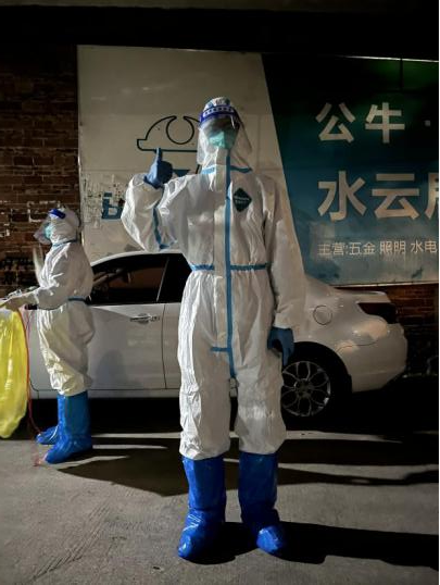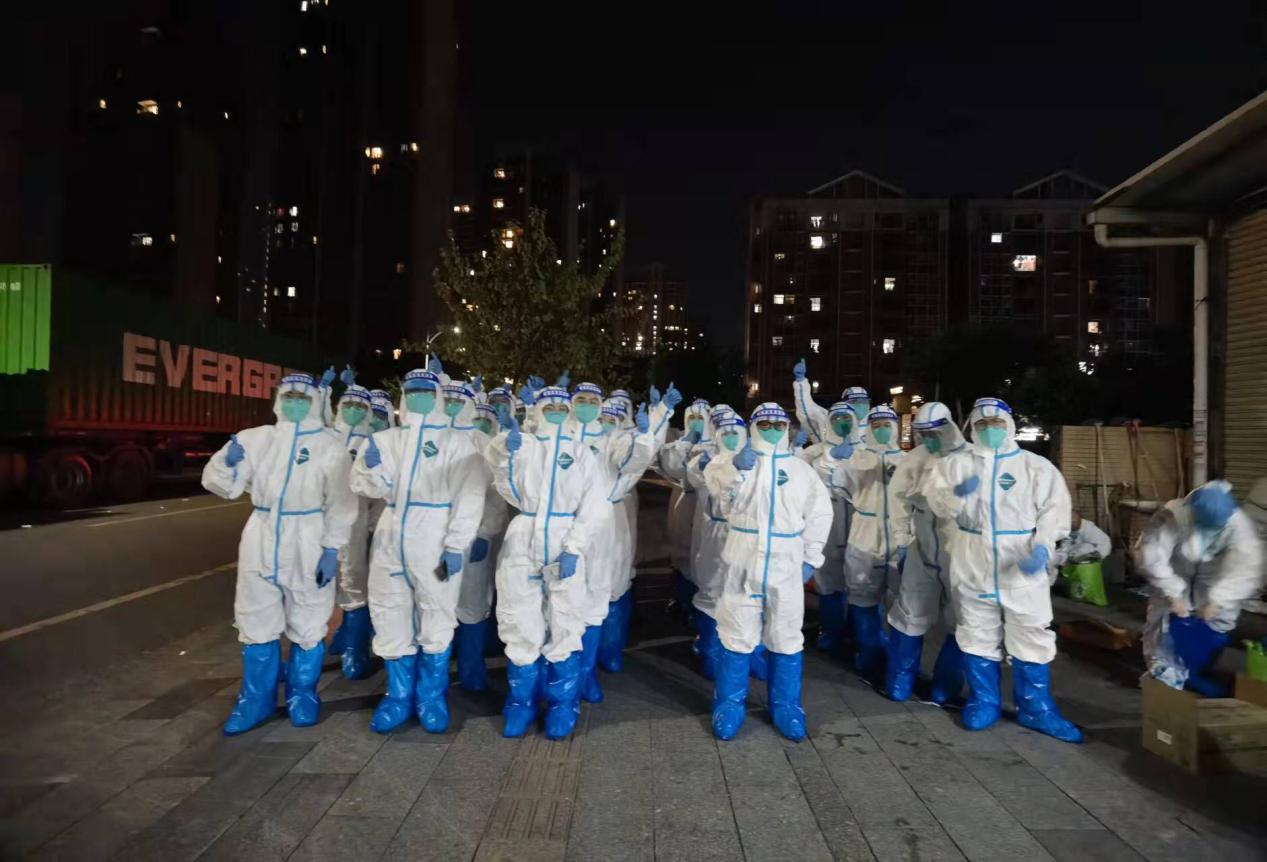 ▲参与扫楼任务的“广建先锋”志愿服务员们